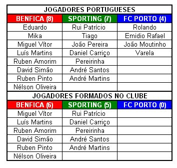Esta teoria dos portugueses no plantel do Benfica eh de facto muito enganadora. Concordo com os outros comentarios, nenhum deles passa de 3 opcao - tirando o Ruben e eventualmente o Nelson se lhe for dada uma oportunidade. O problema eh geral e prende-se com o facto de nao existerem portugueses nos 11 dos 3 grandes. Sporting 4, Porto 1, Benfica 0.